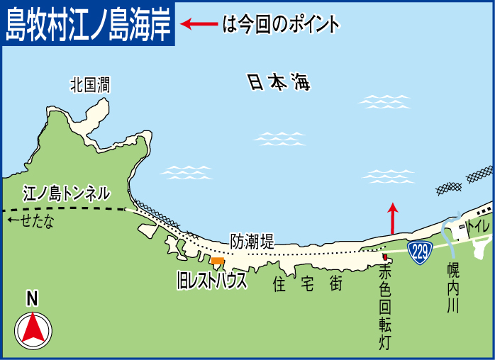 苫小牧市の栃丸典之さん(47)は午前7時半ごろ、同村中ノ川海岸に入った。1時間ほどサオを振ったが、小型と思われる当たりが何度かあったのみでノーヒットに終わる。そのため粘っても期待が薄いと判断し、村内の別の釣り場に移動することにしたそう。