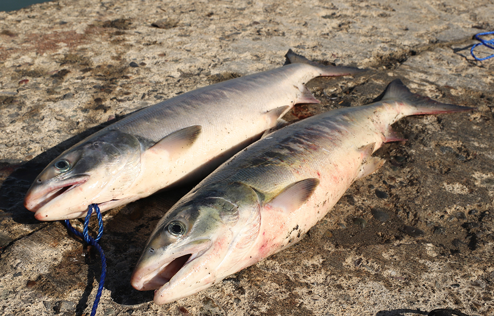 稚内港で『春告魚』のニシンが釣れている。2日午前9時過ぎ、天北1号埠頭を訪れると銀りんまぶしいニシンが上がっていた。