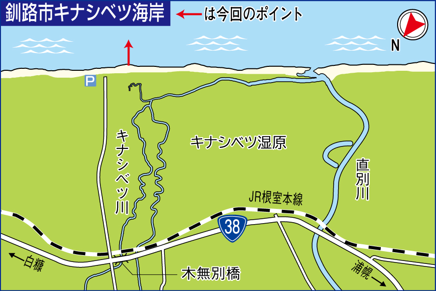10日午前11時ごろ、釧路市音別町のキナシベツ海岸を訪れると、ちょうど帯広市の松田行博さん(56)が48cmの良型マツカワを上げる場面のに出くわした。